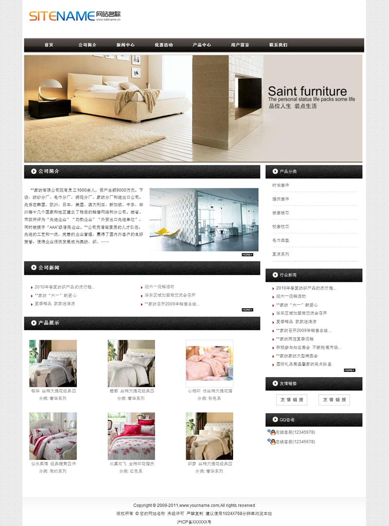 模板編號:     S1307 百姓家紡家用百貨商品日常用品建站模板