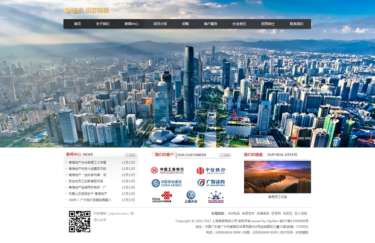 主頁 > 網站建設 > 網站模板 > 建筑、裝修、電器、家居 > 房地產帶樓盤展示類企業網站織夢模板
