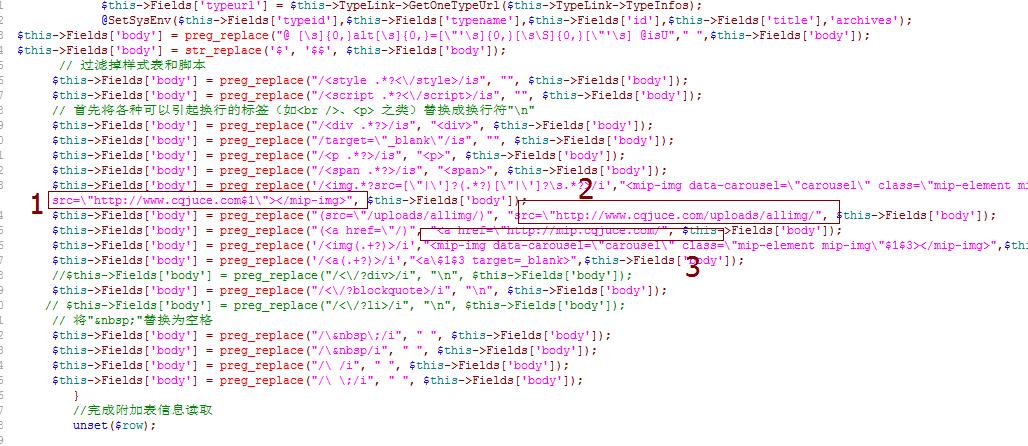 2、如果你的dede程序經過二次開發,諸如新建了內容模型,那么你得把arc.archives.class.php文中截圖部分的“body”替換成你的數據字段名。