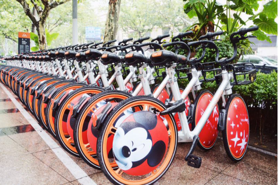 8 月 15 日,一批“戴著蝴蝶結”的靚麗小橙車出現在“魔都”上海的熱門商圈。迪士尼經典卡通“米奇夫婦”和摩拜單車的親密邂逅,共同掀起橙色出行熱潮。這是全球聞名的迪士尼首次與共享單車行業領袖摩拜單車合作,也是摩拜單車首次為迪士尼經典形象設計涂裝車,在跨界合作與個性化創新方面,摩拜再次展現了強大實力與卓越眼光。