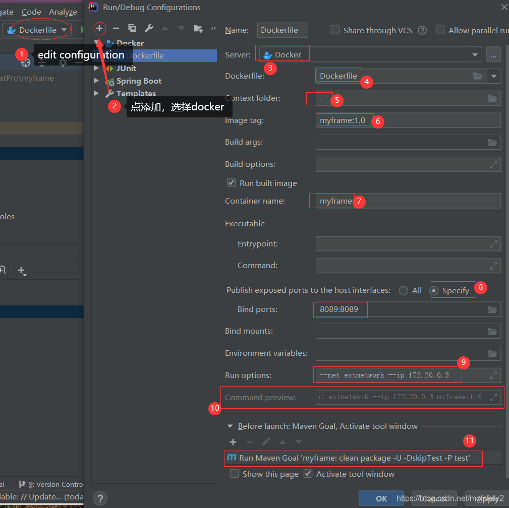 11、配置運行docker run 之前需要重新編譯打包項目: