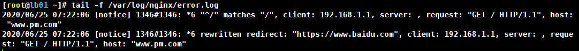 將錯誤日志級別修改為notice使其能記錄到重定向信息(debug, info, notice, warn, error, crit越靠前記錄的信息越多)