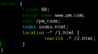 注:^/意思為以根(這里根目錄為/pm_code,對應(yīng)域名為www.pm.com)開頭的url都會重定向到百度。