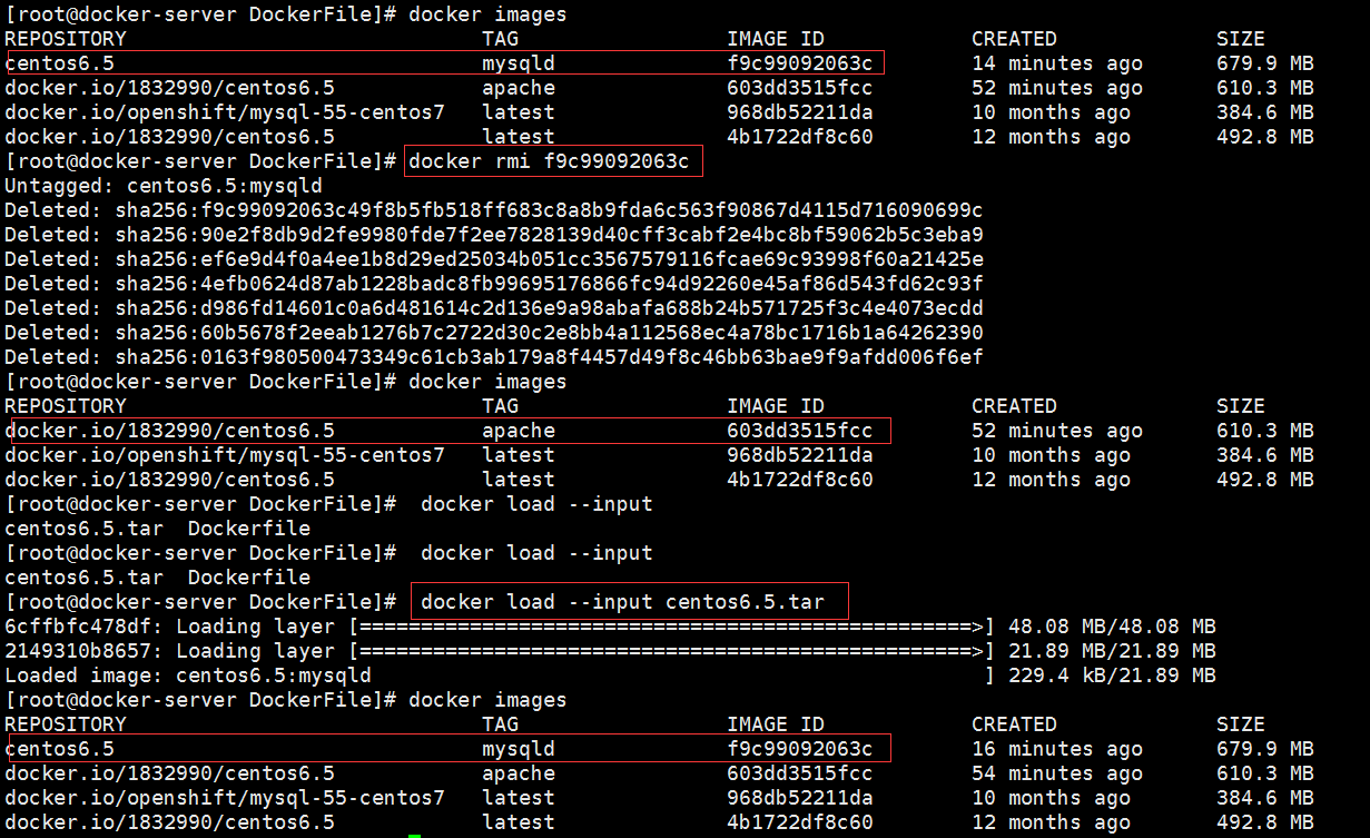 docker load --input centos6.5.tar 或 docker load < centos6.5.tar