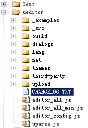 第二步:拷貝源碼包中的dialogs、themes、third-party、editor_all.js和editor_config.js到ueditor文夾中。其中,除了ueditor目錄之外的其余文件均為具體項目文件,此處所列僅供示例。