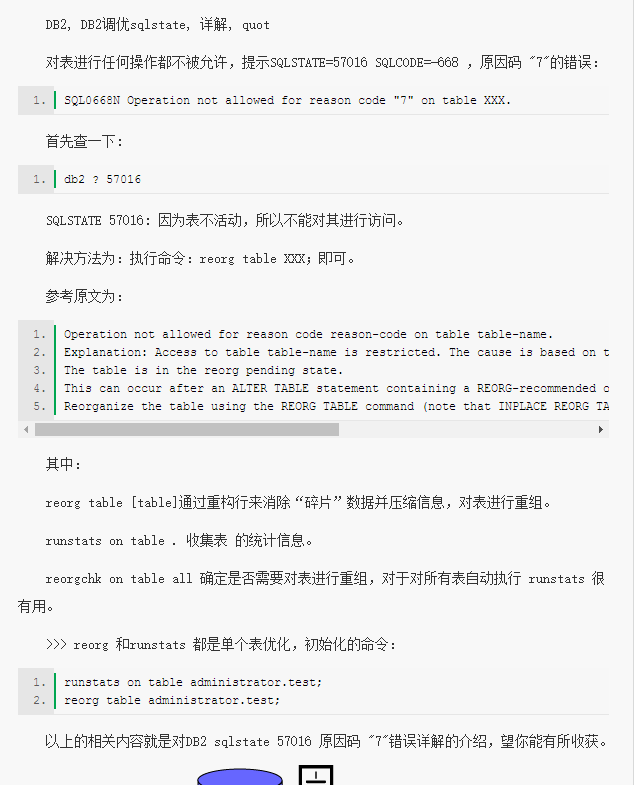 以上所述是小編給大家介紹的詳解DB2 sqlstate 57016 SQLCODE=-668 原因碼 "7"錯誤的快速解決辦法,希望對大家有所幫助,如果大家有任何疑問請給我留言,小編會及時回復大家的。在此也非常感謝大家對腳本之家網站的支持!